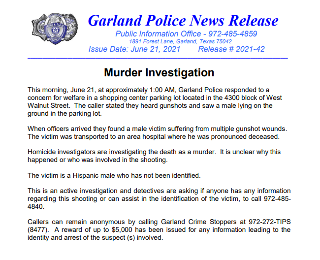 Garland Police Pio On Twitter Press Release 41 Year Old Rodolfo Gutierrez Tapia Arrested After Leading Officers In Pursuit Through Multiple Cities Click Here For Release Https T Co I5t73rw84q Https T Co Nmsfofgtvd
