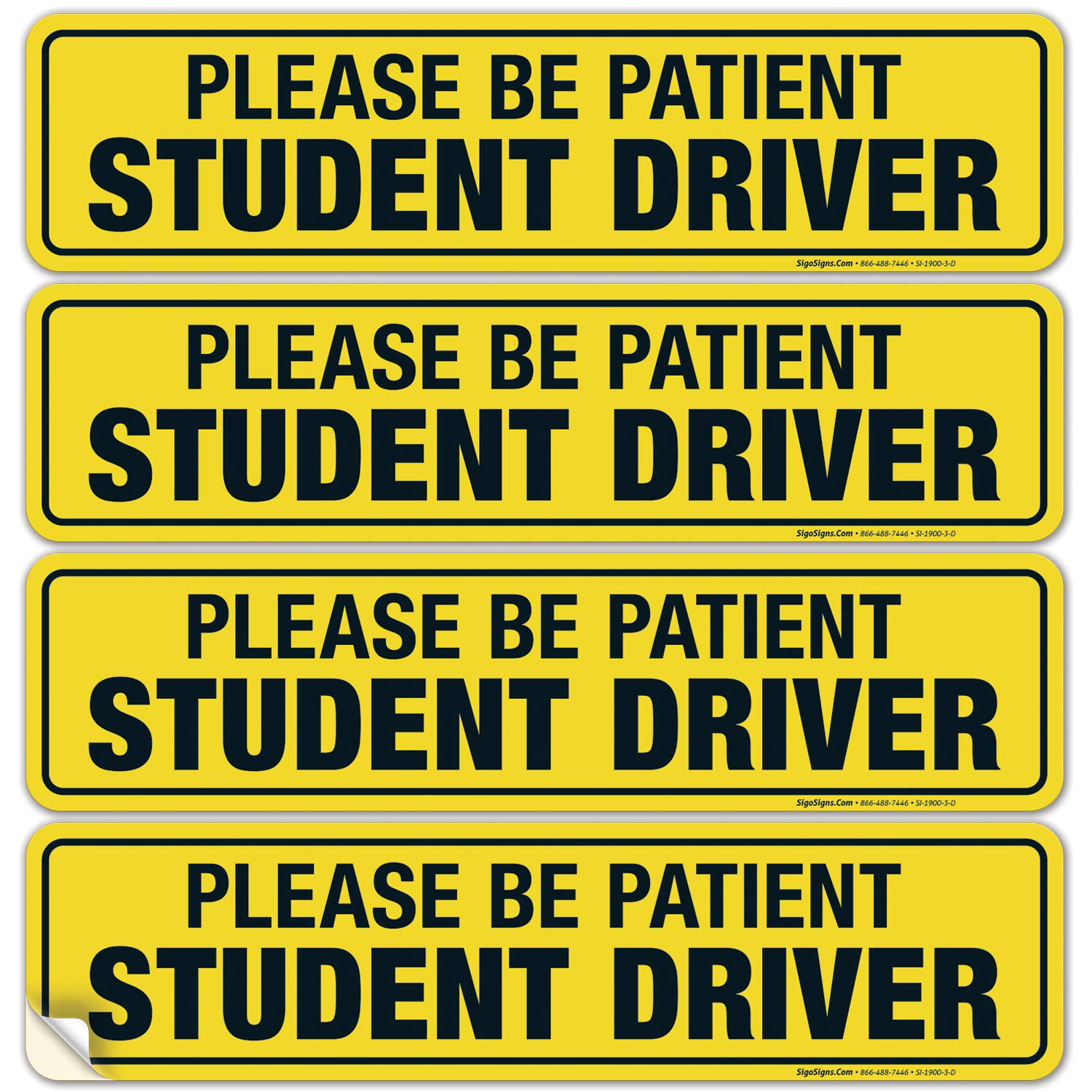 Amazon Com 4 Pack Student Driver Sign Please Be Patient 3x9 4 Mil Sleek Vinyl Decal Stickers Weather Resistant Long Lasting Uv Protected And Waterproof Made In Usa Industrial Scientific