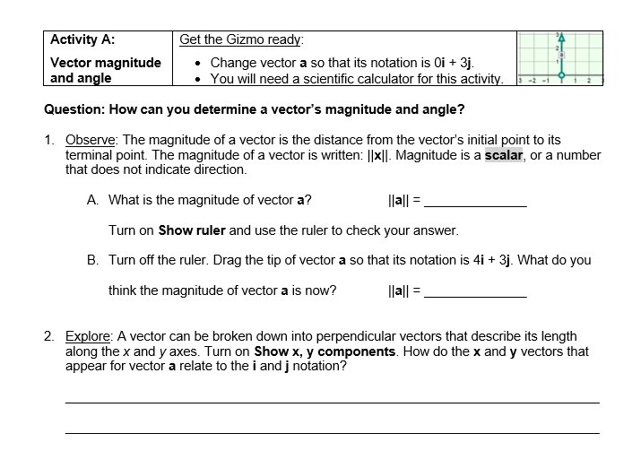 Set the vectors so that a 5i j and b i 3j. Some of the worksheets for this concept are Vector components and vector addition work Arise physics first topics to consider Explorelearning gizmo modules Exploring gene therapy 3 points in the coordinate Reading and writing activities in science. Drag the initial point of both vectors to the origin.