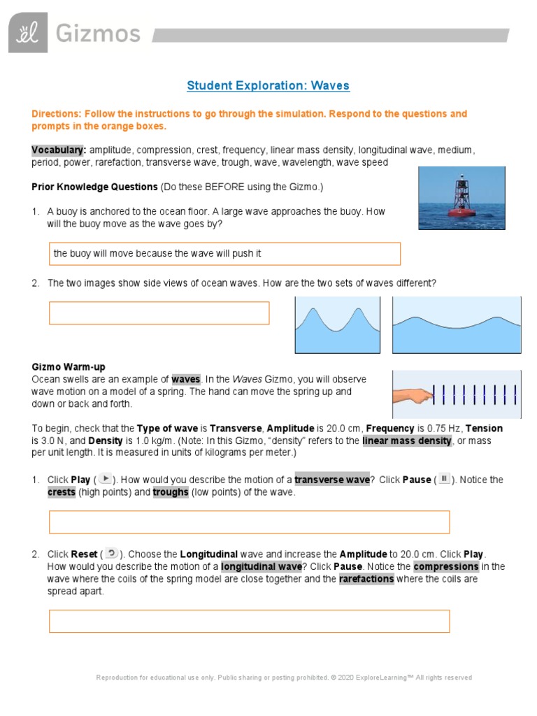 Exploration gizmo waves student exploration key student guide for vauxhall download gizmo exploration guide answers waves pdf. Explore learning gizmo answer key ripple tank free download pdf ripple tank gizmo. In the Waves Gizmo you will observe wave motion on a model of a spring.